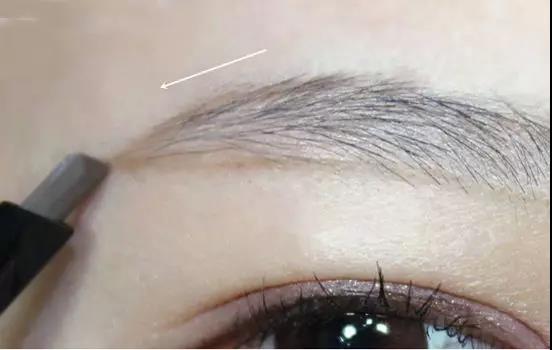 首先從下沿開始,從眉頭畫到眉尾,大概是一個(gè)略微上升的弧度即可。自己可以多試試不同弧度看看哪個(gè)合適,